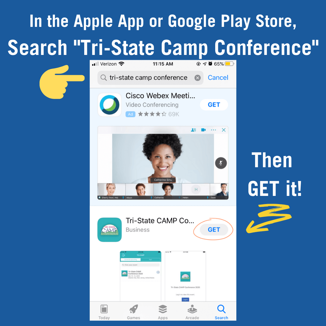 Search the app store for “Tri-State Camp Conference”